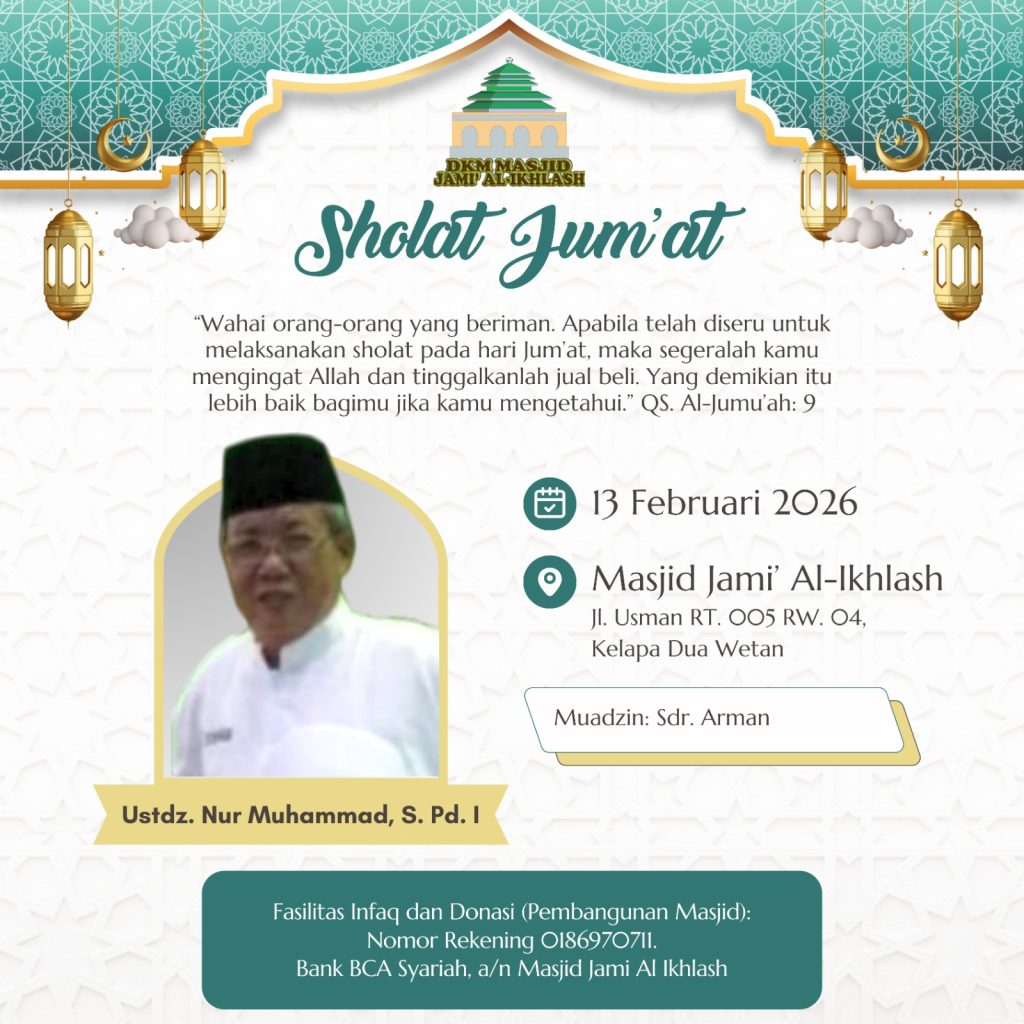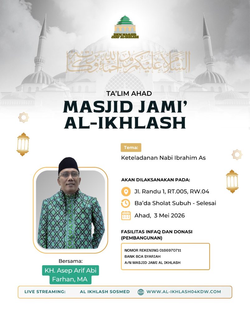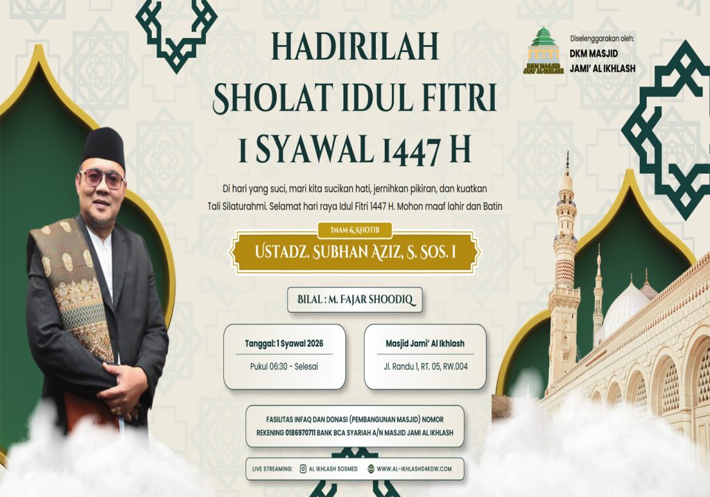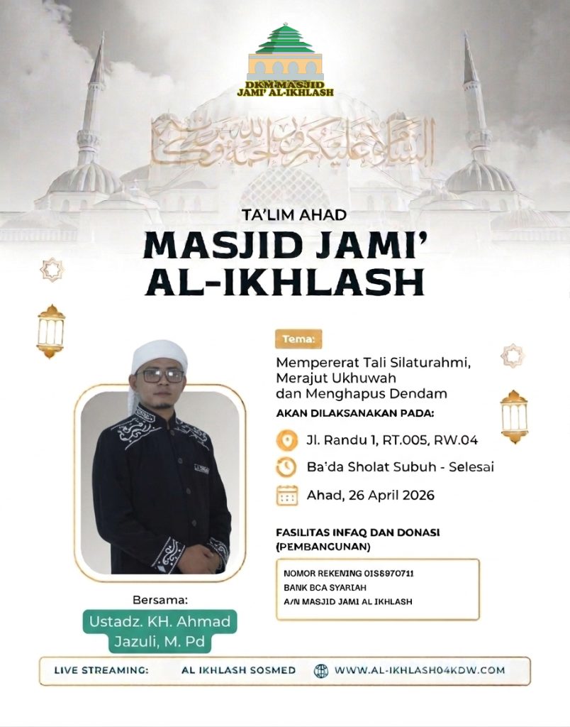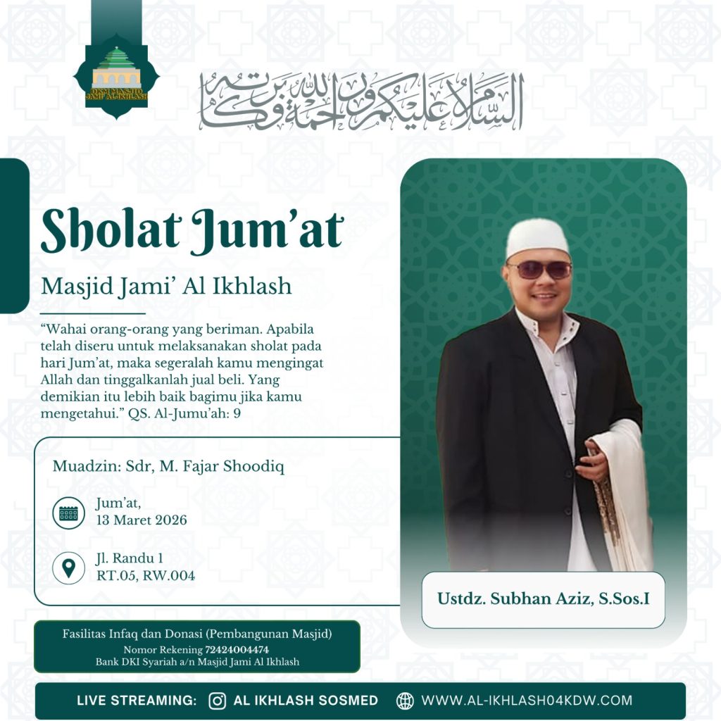 al-ikhlash04kdw.com adalah website dari Masjid Jami Al-Ikhlash, yang terletak di Jalan Usman RT. 005 RW. 004, Kelapa Dua Wetan – Ciracas Jakarta Timur 13730. Dimana masjid ini adalah sebagai wadah tempat pusat ibadah, bermasyarakat dan berfungsi untuk mewujudkan kesejahteraan dan ketertiban sosial melalui kajian-kajian keagamaan. Di dalam masyarakat yang majemuk, seperti Indonesia, maka masjid dapat difungsikan untuk memberikan dakwah yang bersifat menyejukkan dalam praktik kehidupan sehari-hari.